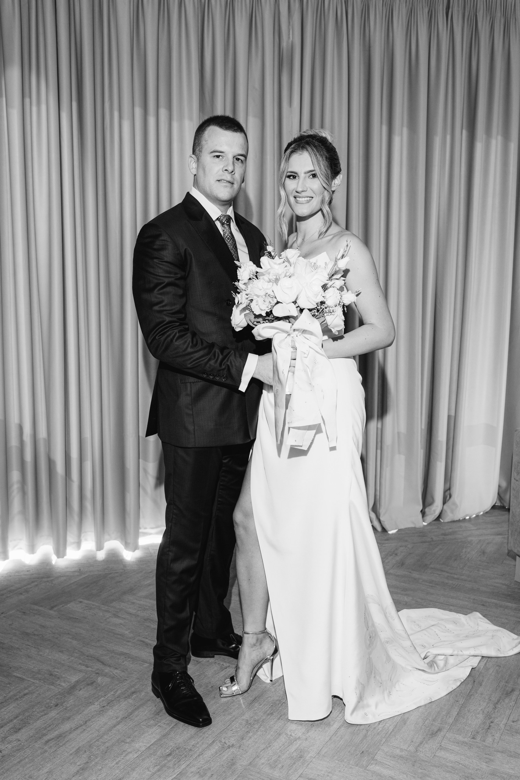 Mina i Nemanja su u junu 2024. godine proslavili svoje venčanje u atmosferi modernog minimalizma i pažljivo oblikovanih detalja. Kroz objektiv Saše Adamovića zabeleženi su najautentičniji trenuci njihovog dana, dok je Flamingo cvećara svojom dekoracijom dodala prepoznatljiv vizuelni pečat koji je upotpunio celokupnu estetiku događaja.